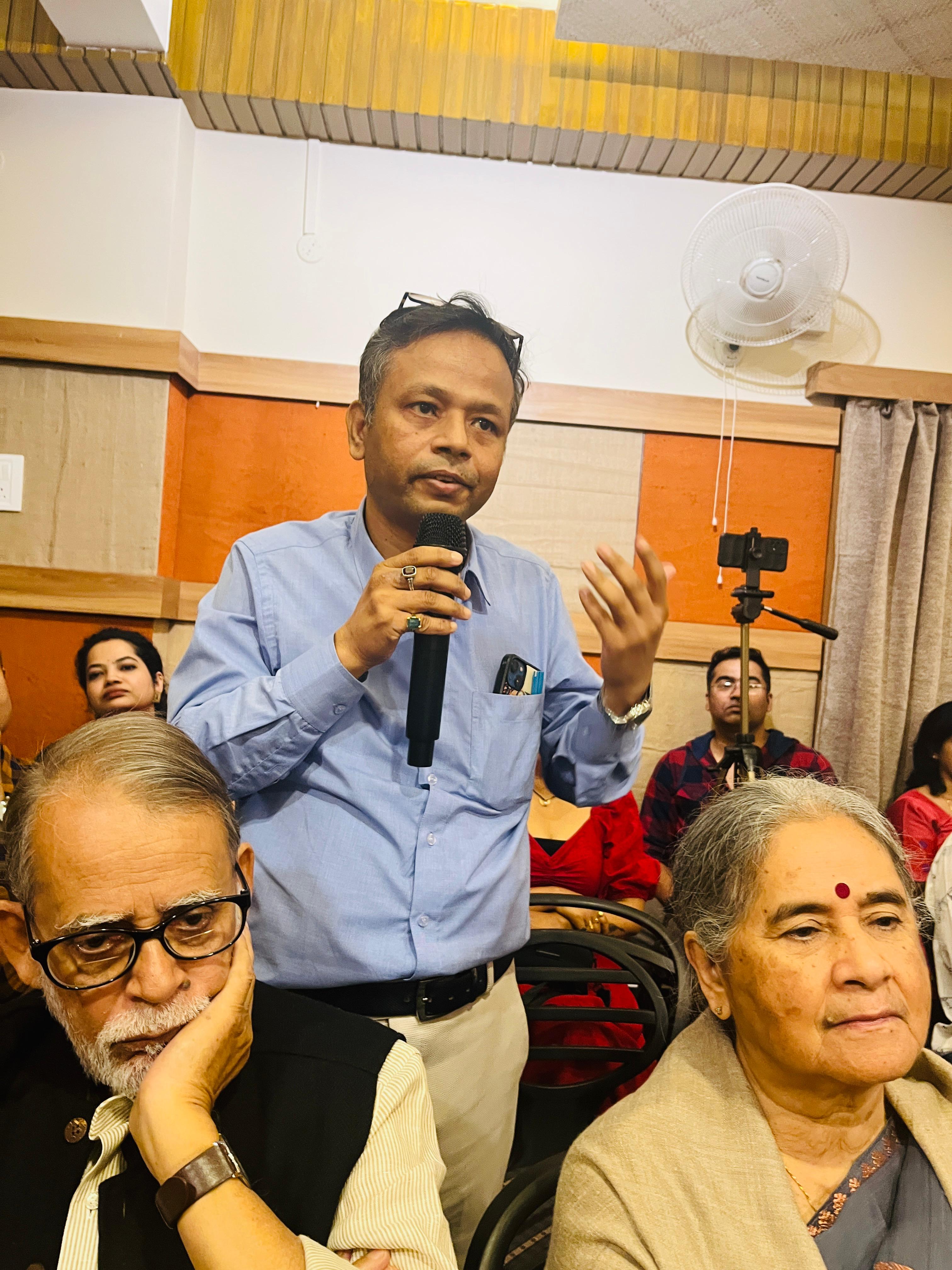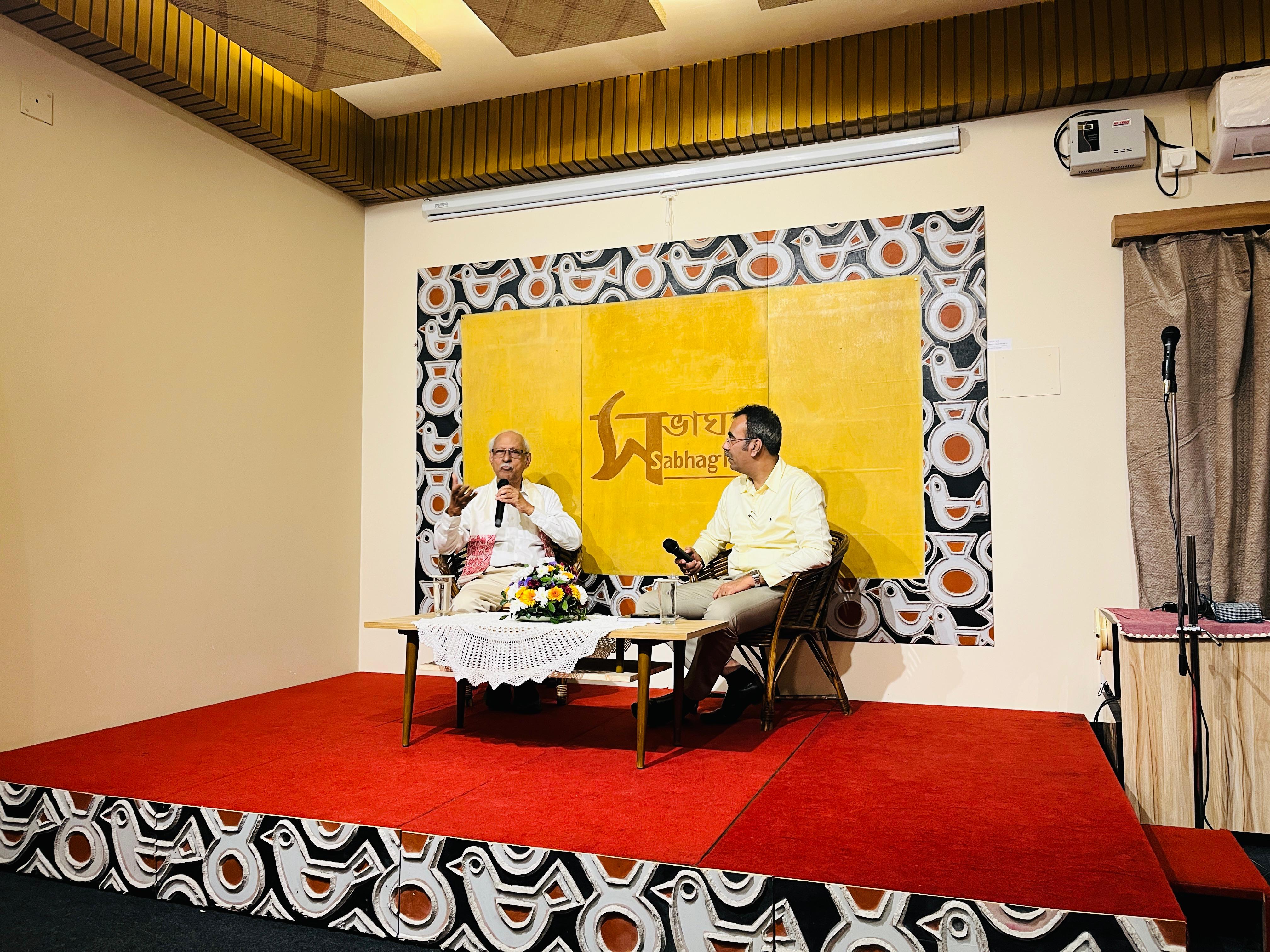 The central event of the 9th March was preceded by a 'Meet the Author' programme on the evening of the 8th March 2025 at Sabhaghar where our Chief Guest Jnanpith Awardee Damodar Mauzo was in conversation with Professor Bibhash Choudhury in what turned out to be a very informative, interesting and incisive interaction. For photos and more details click here.